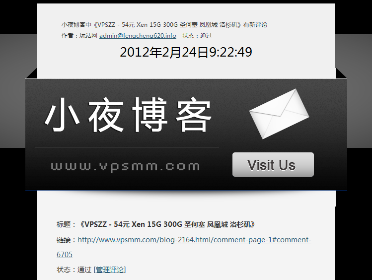 一个比较新潮的邮件模板,必须使用插件《评论邮件通知 CommentToMail》