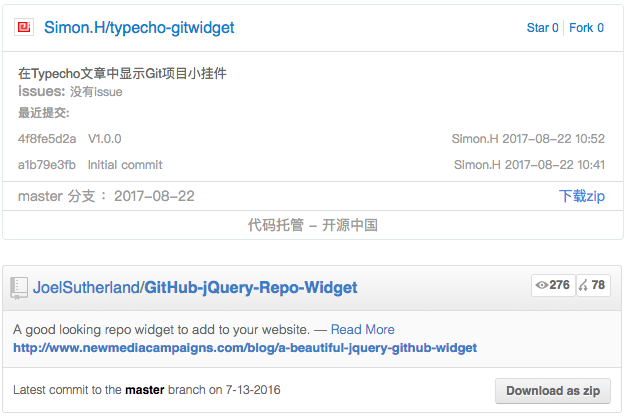 开发作者:http://git.oschina.net/SimonH/typecho-gitwidget